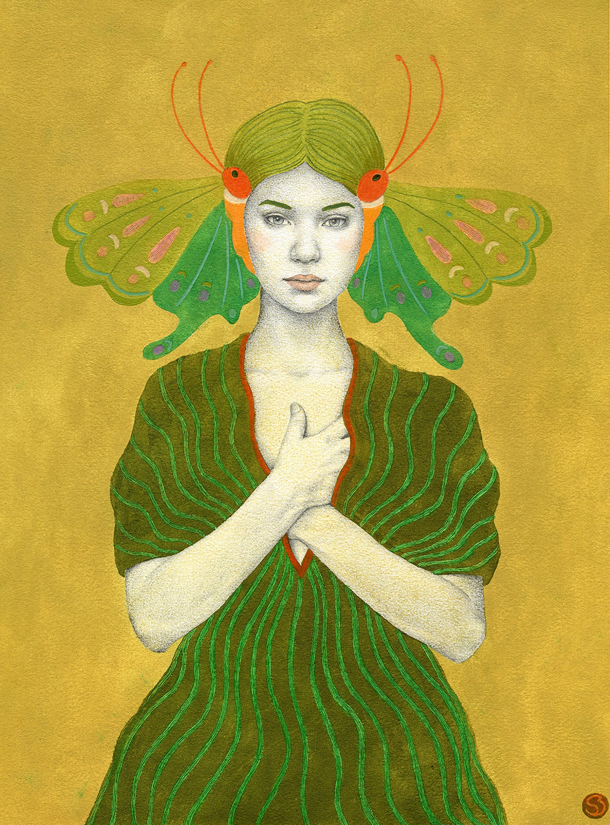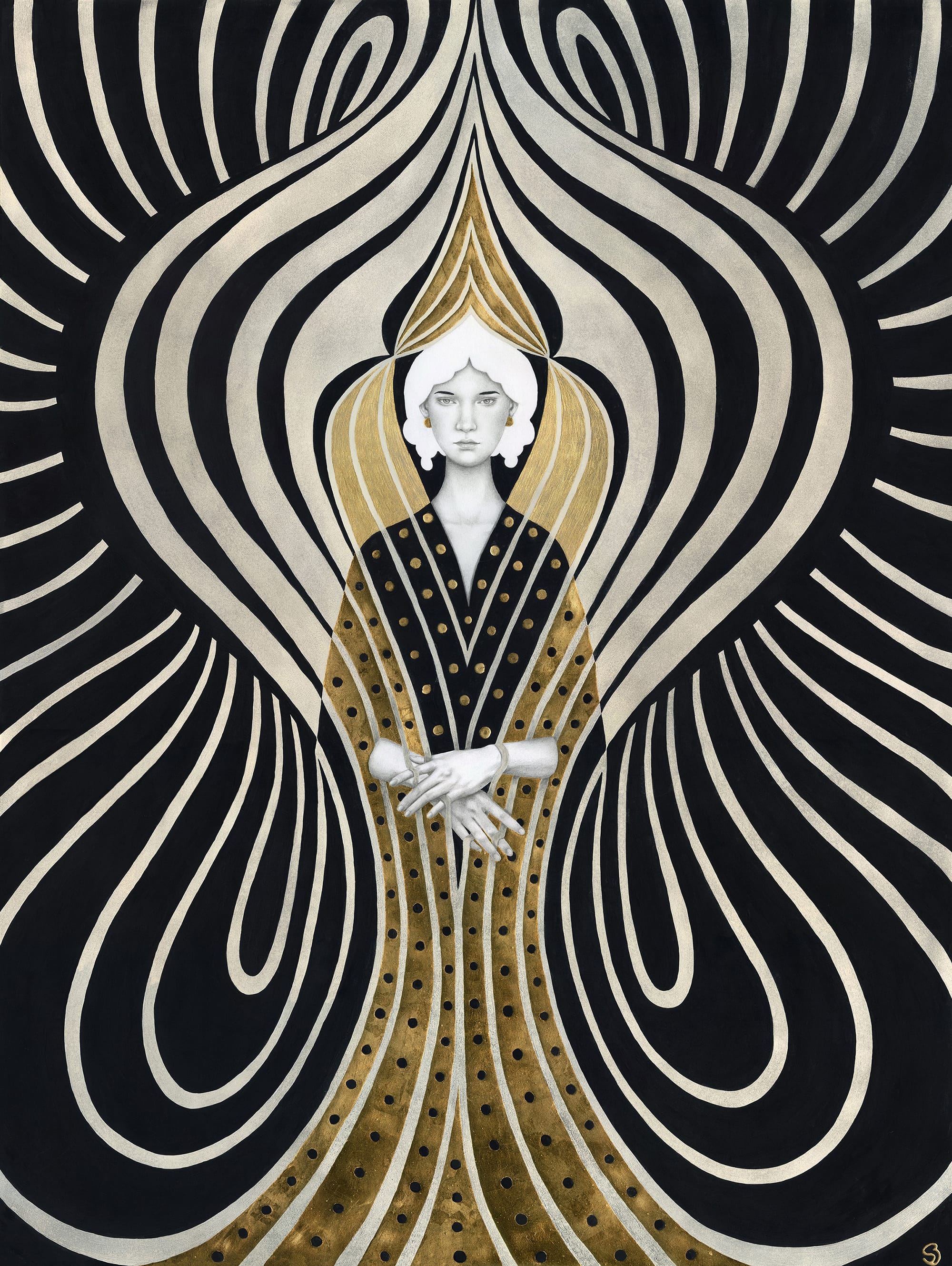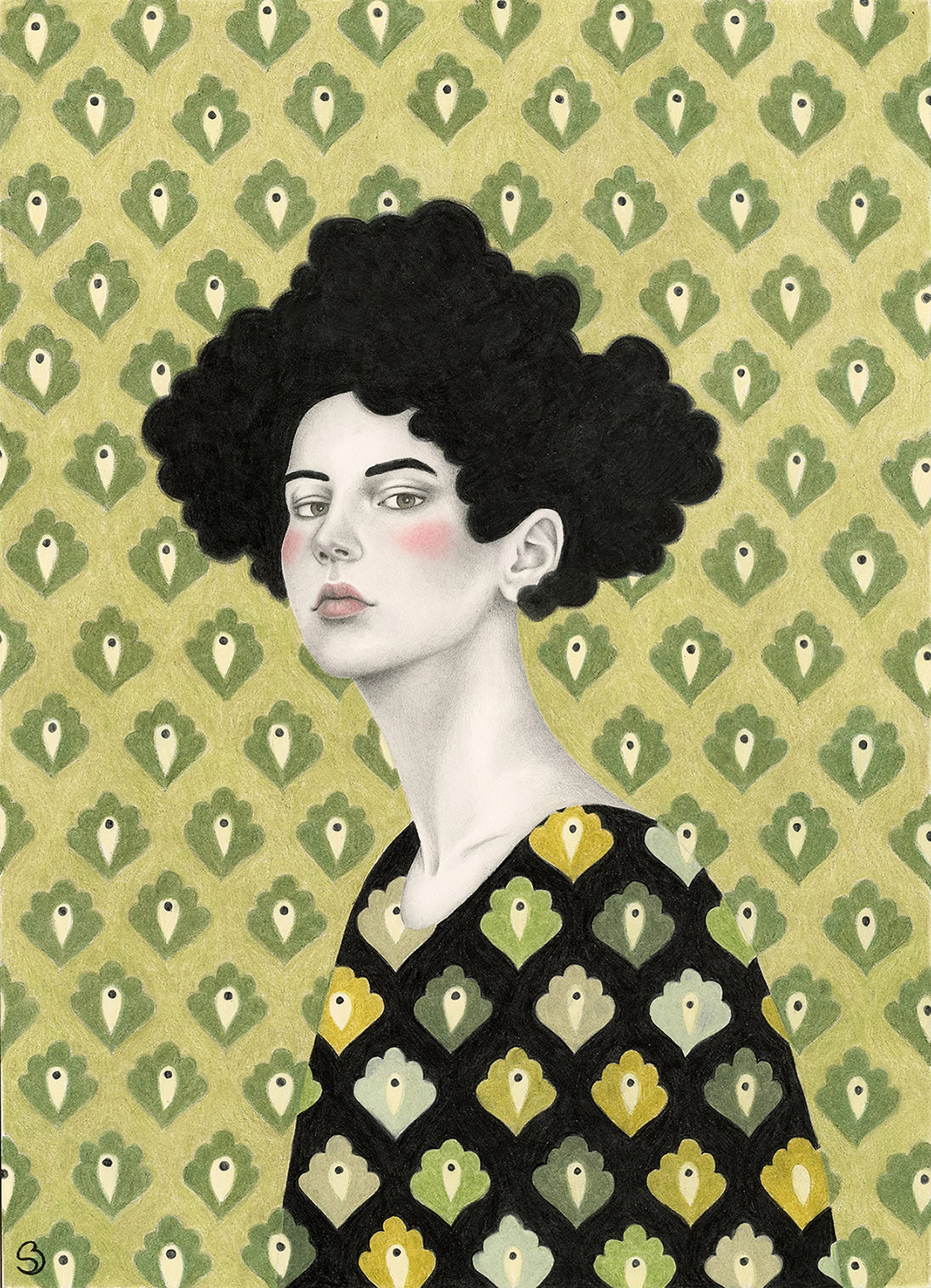 En los retratos audaces e imaginarios de la artista Sofia Bonati, las mujeres no solo posan: te miran directo. Envueltas en telas que parecen flotar y rodeadas de simetrías naturales —como alas de insecto o patrones geométricos—, las figuras femeninas que pinta tienen una presencia magnética, segura, imposible de ignorar.