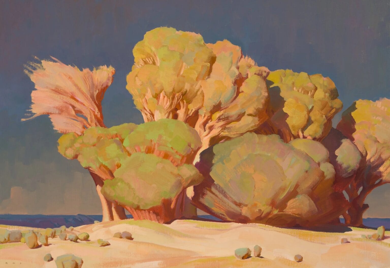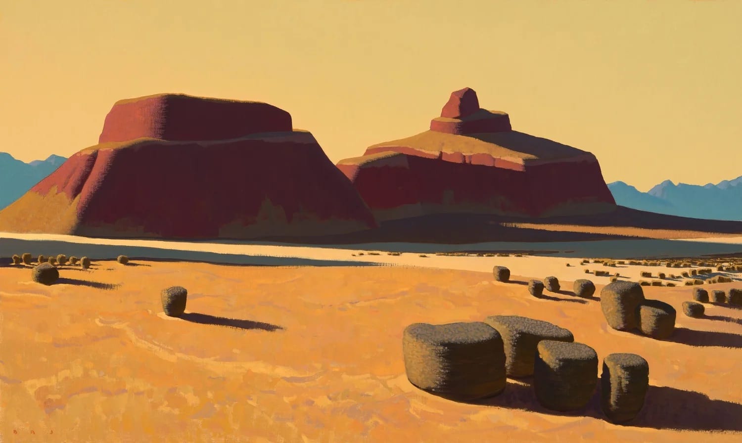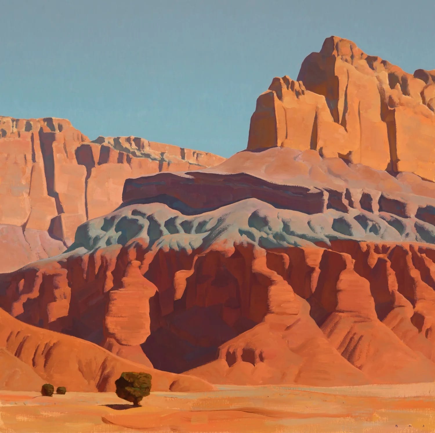 Para Brett Allen Johnson, estos paisajes áridos y atemporales son fuente de inspiración para sus óleos vibrantes, que dialogan con el legado de artistas como Maynard Dixon y Georgia O’Keeffe. Su próxima exposición individual, Two Worlds, se inaugurará el 6 de septiembre en la Maxwell Alexander Gallery en Pasadena, y reunirá varias de sus obras más recientes. Entre ellas destacan Banded Cliffs, Fruita, inspirada en las formaciones de Capitol Reef National Park, y la pintura homónima Two Worlds, que muestra la silueta solitaria de un cañón desde una perspectiva opuesta.