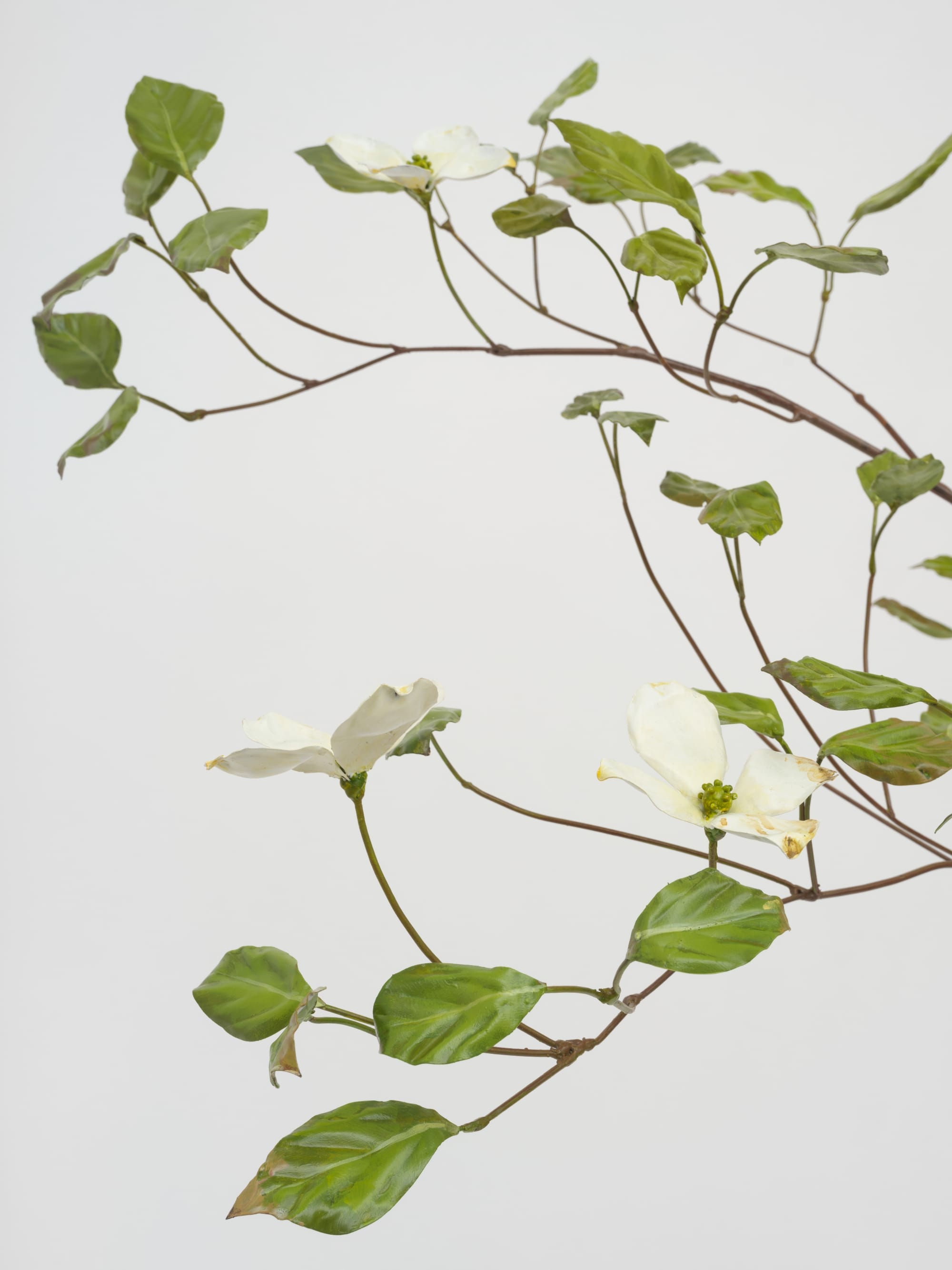 El artista esculpe plantas comunes en metal: convierte formas frágiles y vulnerables en un material resistente, y luego pinta sus colores y texturas con detalle minucioso. Es como crear “pequeños monumentos a cosas que normalmente desaparecen o cambian en días, o en minutos”, dice él mismo.
