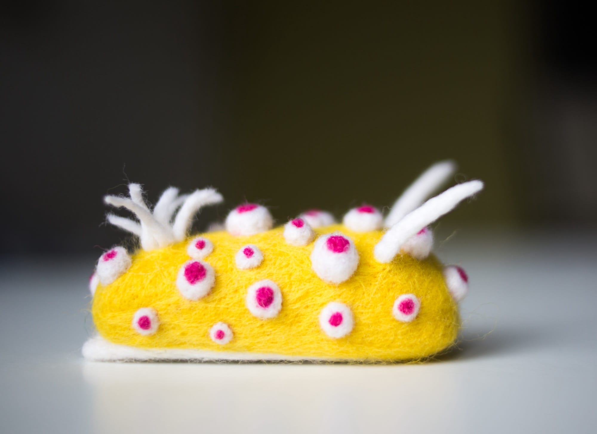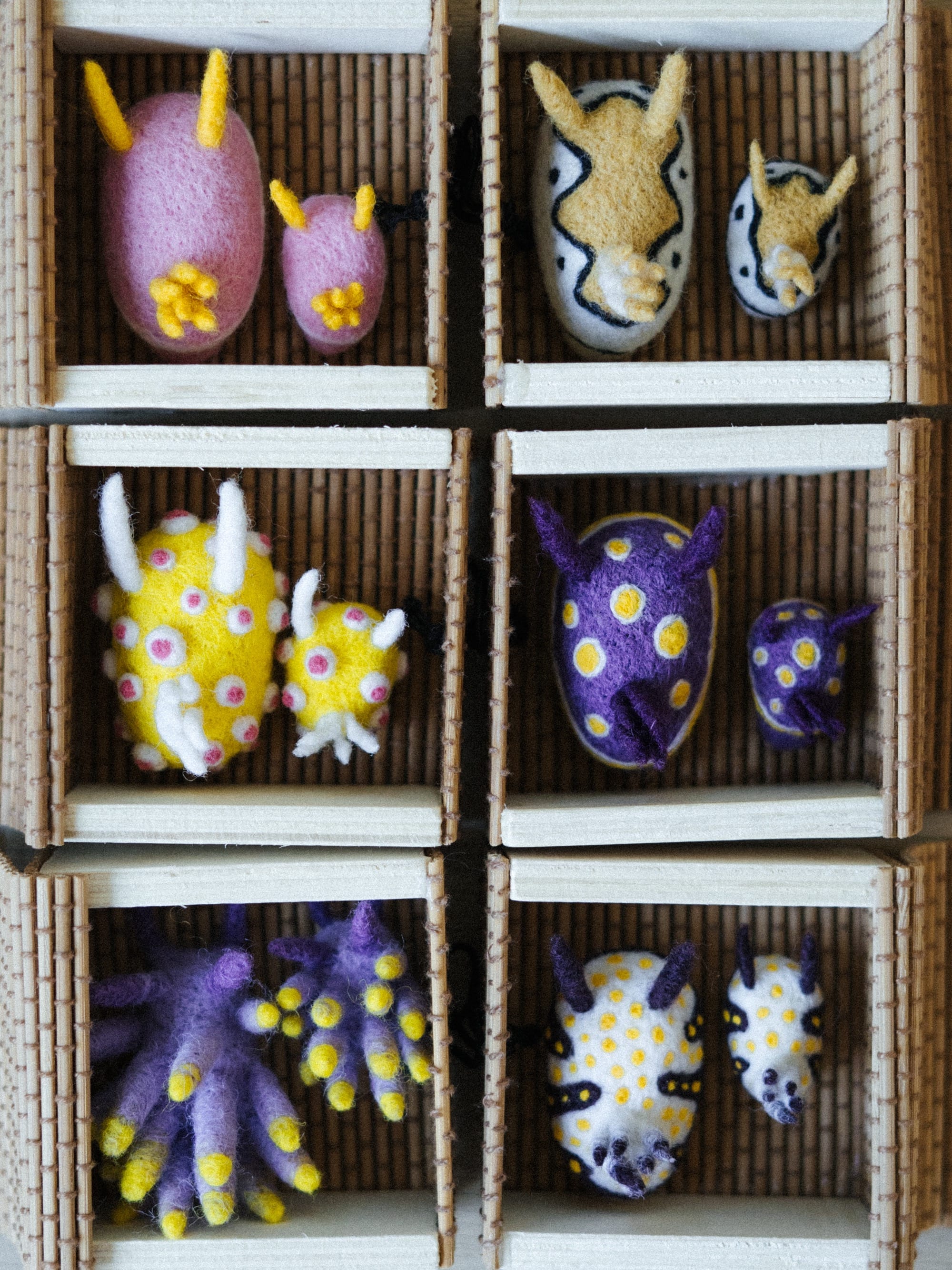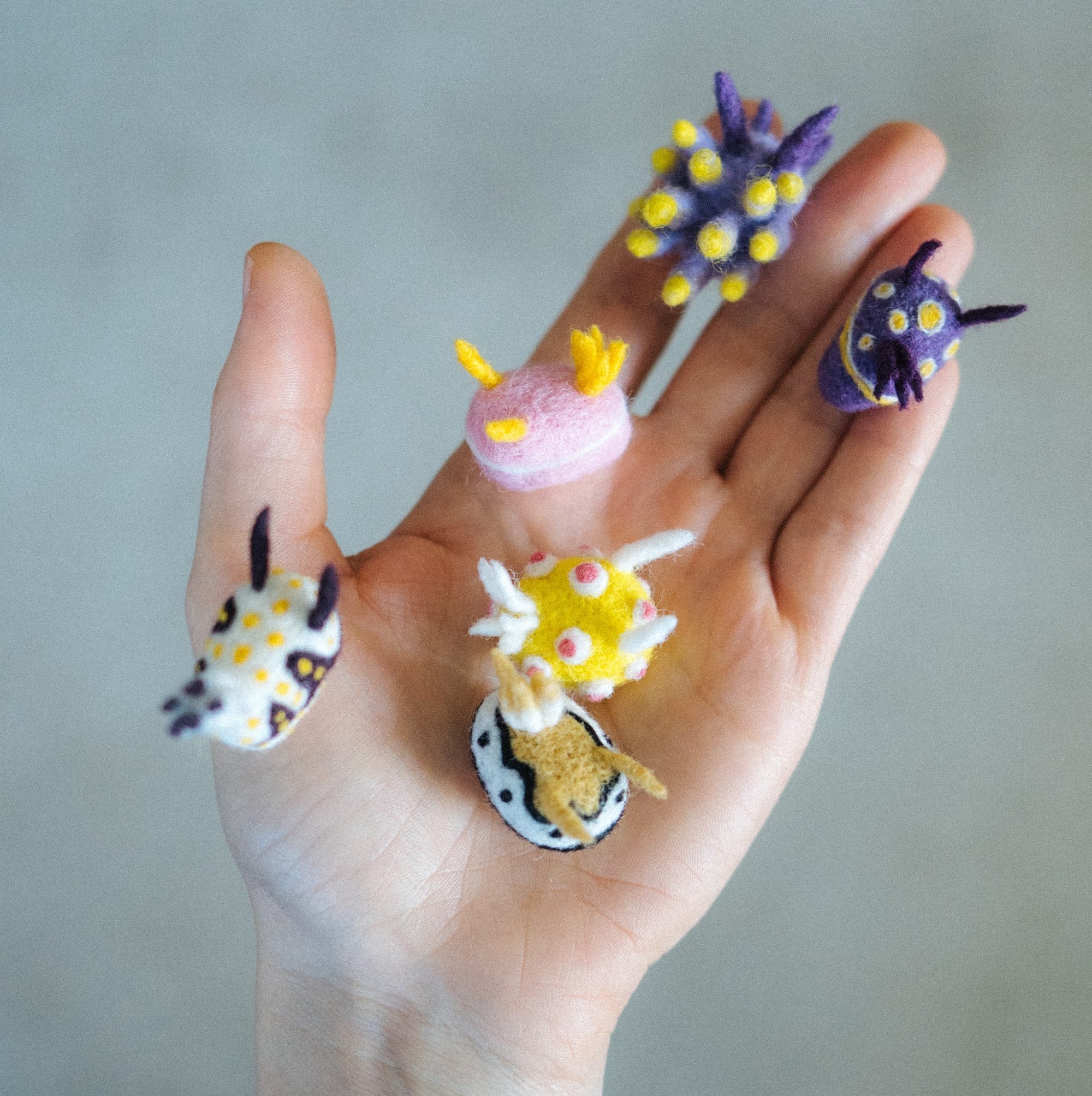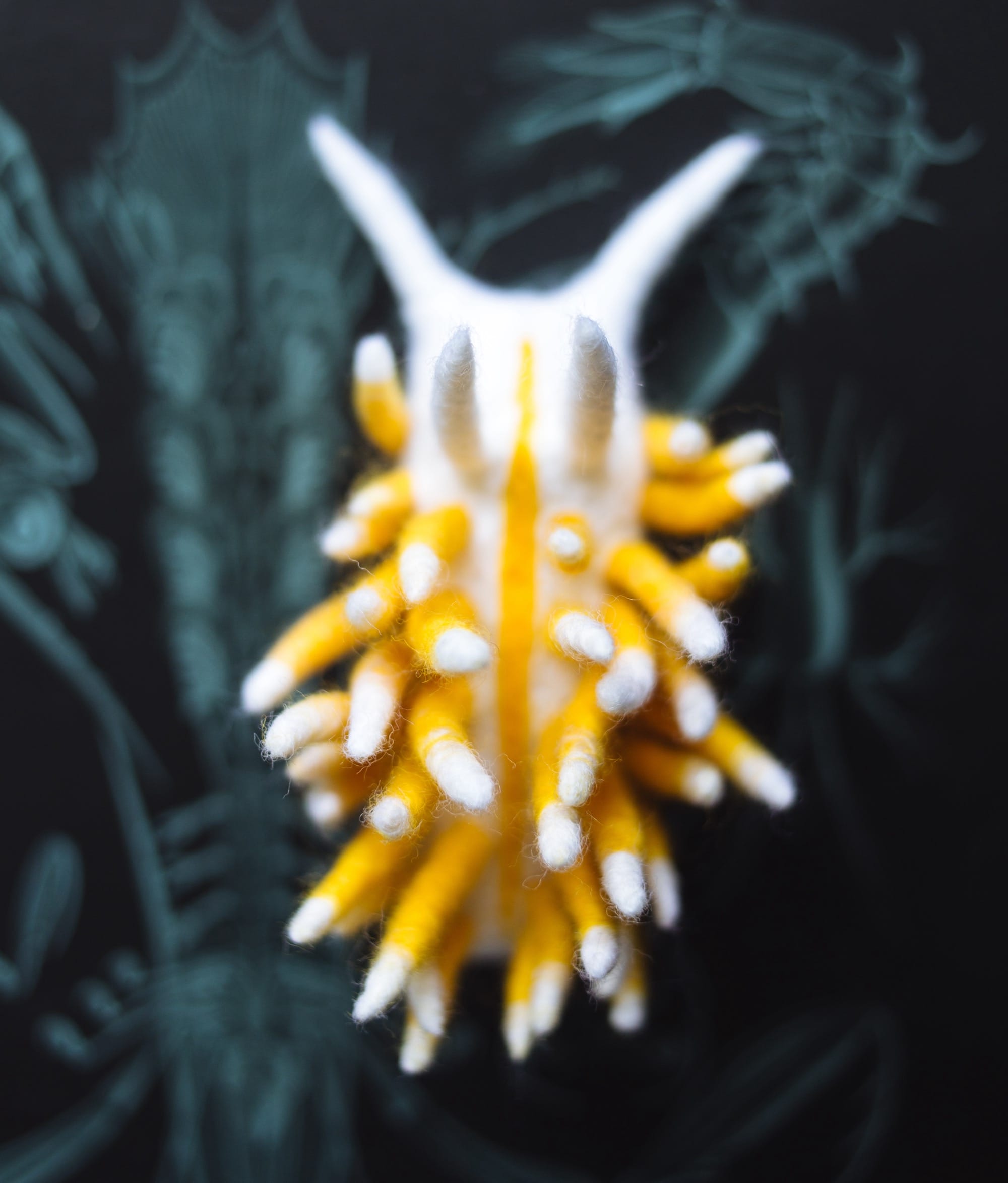 Wool Creature Lab nació cuando, para pasar el tiempo y explorar su creatividad, fieltró unos nudibranquios y los regaló a los científicos que los estudiaban. Empezó una tienda en Etsy y su Instagram @wool_creature_lab (con más de 18K seguidores), guiada por la intuición de que “estos pequeños querían existir en el mundo”. Pronto, biólogos marinos y buceadores de todo el planeta encontraron su trabajo; algunos le pidieron especies específicas, incluso las que habían descubierto por primera vez.